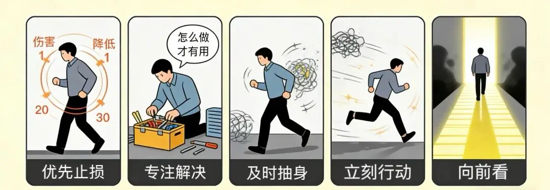 遇到问题先处理当下,把伤害降到最低,不把精力浪费在追究责任上。
