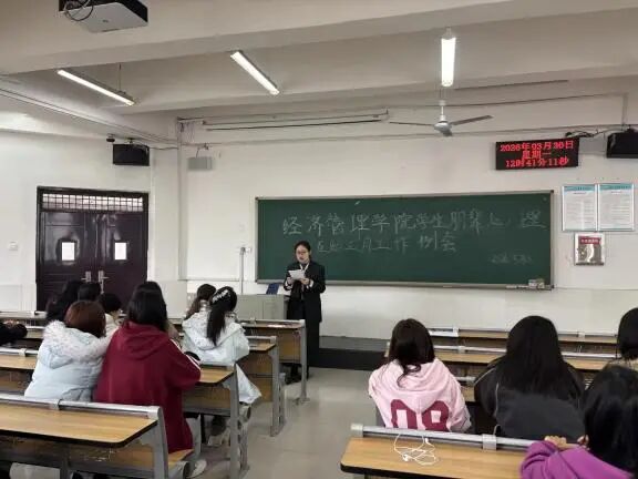 会上,会长王雨欣复盘3月工作,围绕通知传达、督查落实、材料归档等明确工作规范,并对4月重点工作作出安排,心理专干邹玺作相关补充部署。