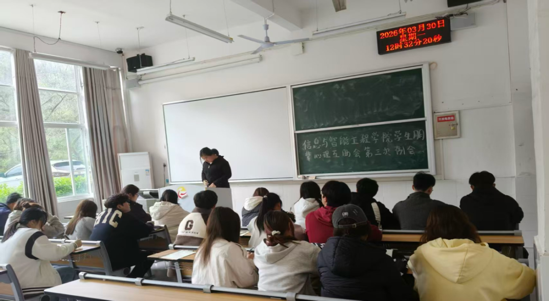 信息与智能工程学院学生朋辈心理互助会第三次例会于2026年3月30日在博学楼1513召开。会上,会长李银银对各成员近两周的工作完成情况予以肯定,同时也指出当前存在工作推进时效性不足、协作效率偏低等问题,要求各部门及全体成员高度重视、及时整改。